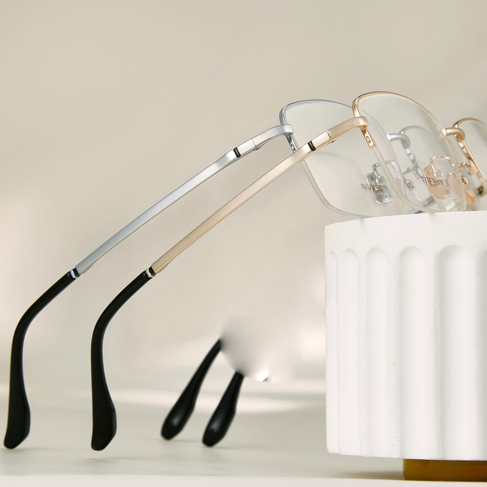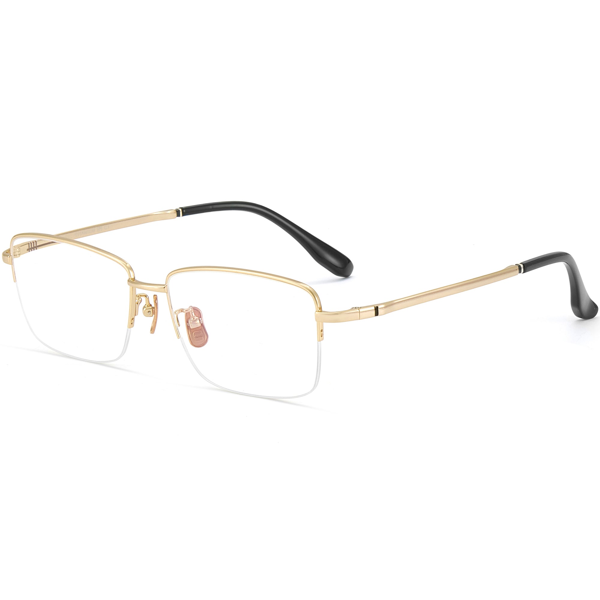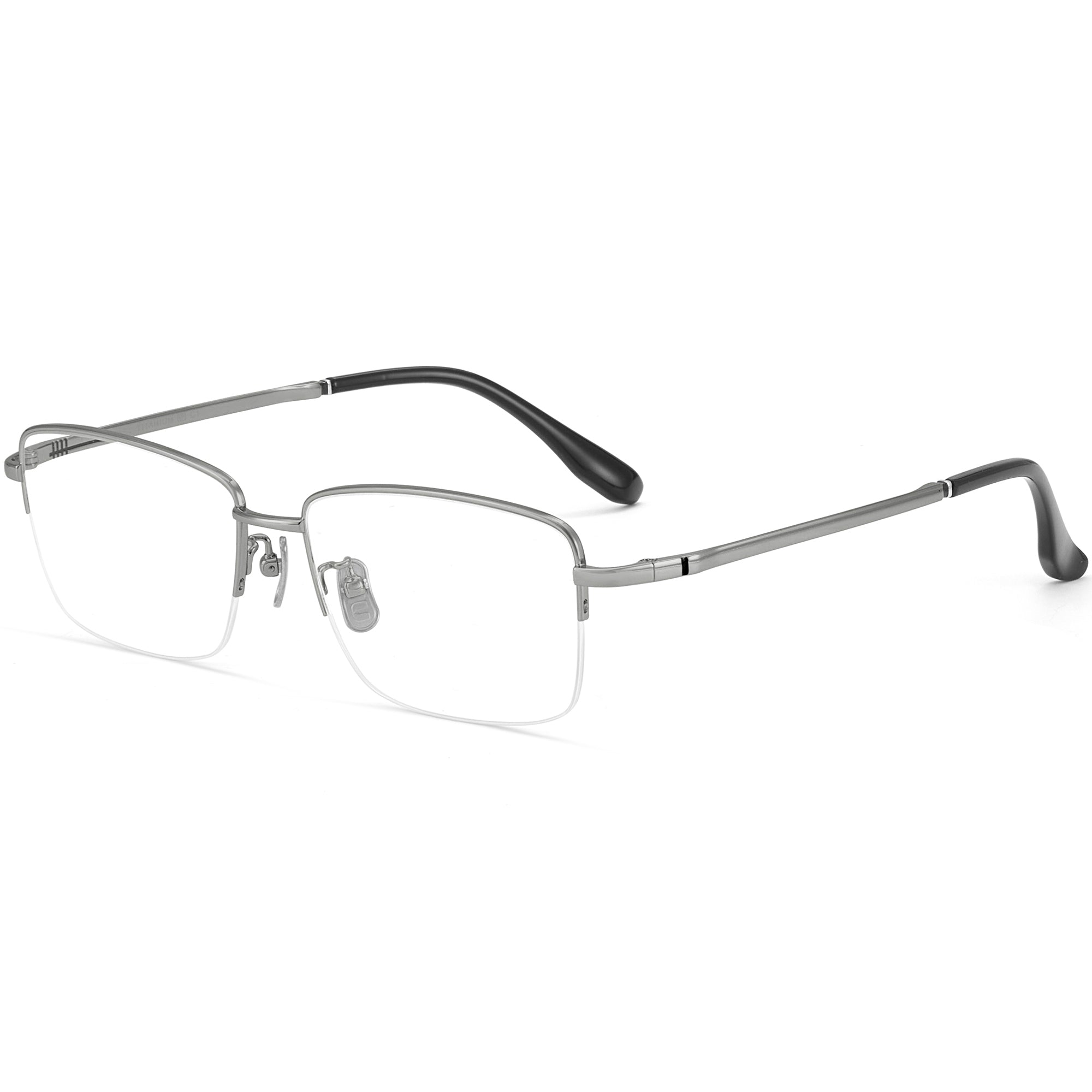 Diese rechteckigen Brillen verfügen über ein halbrand-Design mit breiten Fassungen, die speziell für Männer mit größeren Köpfen entwickelt wurden. Gefertigt aus leichtem und haltbarem Titan, bieten diese Fassungen den ganzen Tag über Komfort, während sie gleichzeitig ein schlankes Profil bewahren. Die verstellbaren Nasenpads sorgen für eine maßgeschneiderte Passform und optimalen Tragekomfort. Erhältlich in zeitlosen Farben wie Schwarz, Silber, Gold und Grau, kombinieren diese Brillen klassischen Stil mit modernen Materialien und sind eine vielseitige und elegante Ergänzung für jede Garderobe.