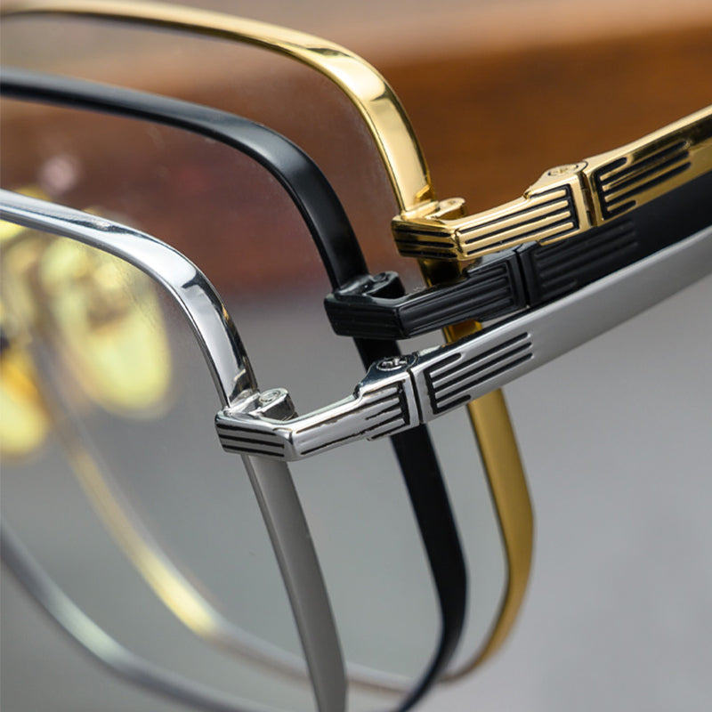 Wir präsentieren unsere neuen übergroßen Brillen mit Titan‑Fassung, speziell auf Männer mit größerem Kopfumfang zugeschnitten. Aus hochwertigem Titan gefertigt, bieten diese Metallfassungen erstklassige Langlebigkeit und ein schlankes, modernes Design. Dank ihres großzügigen Formats lassen sie sich mühelos auch als Sonnenbrillen nutzen und vereinen so Funktion und Stil perfekt. Ihr flexibles Gestell sorgt selbst bei längerer Tragezeit für hohen Komfort. Erhältlich in drei edlen Farbvarianten – klassisches Schwarz, elegantes Silber und luxuriöses Gold – sprechen sie deinen persönlichen Geschmack an und setzen einen markanten Akzent in jedem Outfit. Veredle deinen Look mit diesen vielseitigen, stilvollen Brillen, die Eleganz und Praktikabilität mühelos miteinander verbinden.